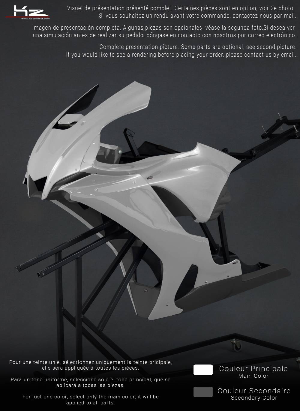 Les pièces optionnelles seront produites à la (aux) teinte(s) sélectionnée(s) pour l'ensemble du kit, tel que le full pack est présenté en 1er visuel.